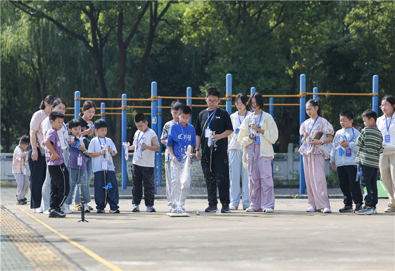 選手在參加“中天一號”小水火箭距離挑戰項目比賽