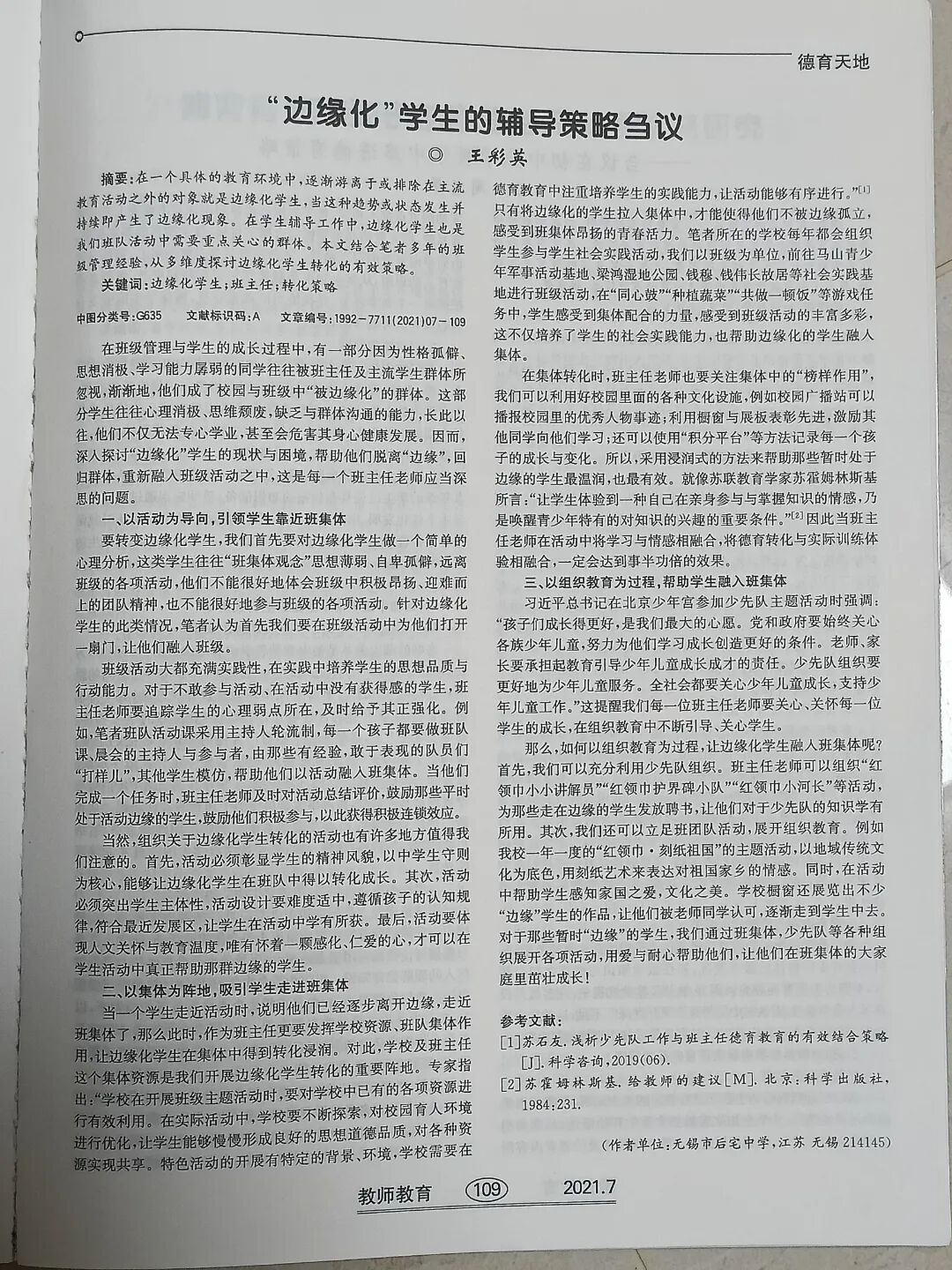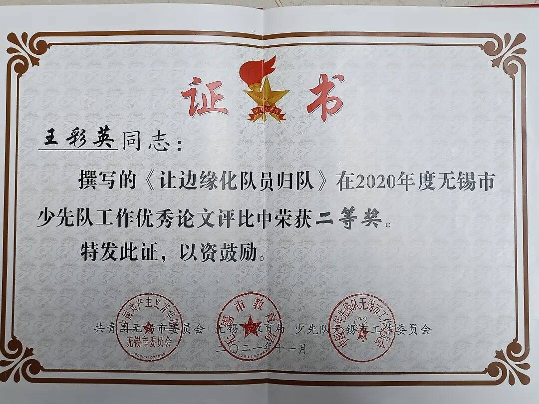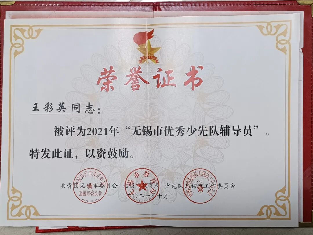 她個人的成長更是步履不停:2002年獲評“無錫市優秀班主任”,2007年成為“無錫市優秀教育工作者”,2008年入選“無錫市首批中小學班主任工作能手”,2009年拿下“無錫市教學能手”稱號;2021年,她又同時收獲“無錫市優秀少先隊輔導員”與“新吳區優秀班主任”的認可。