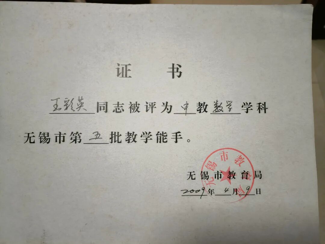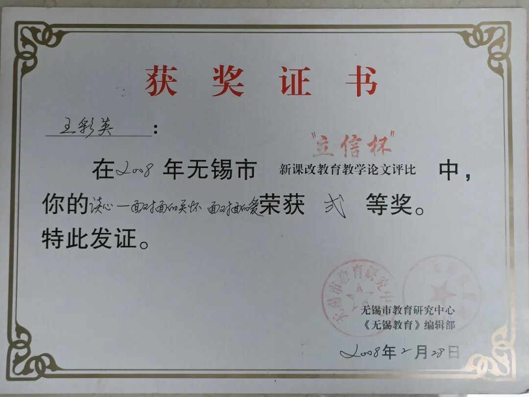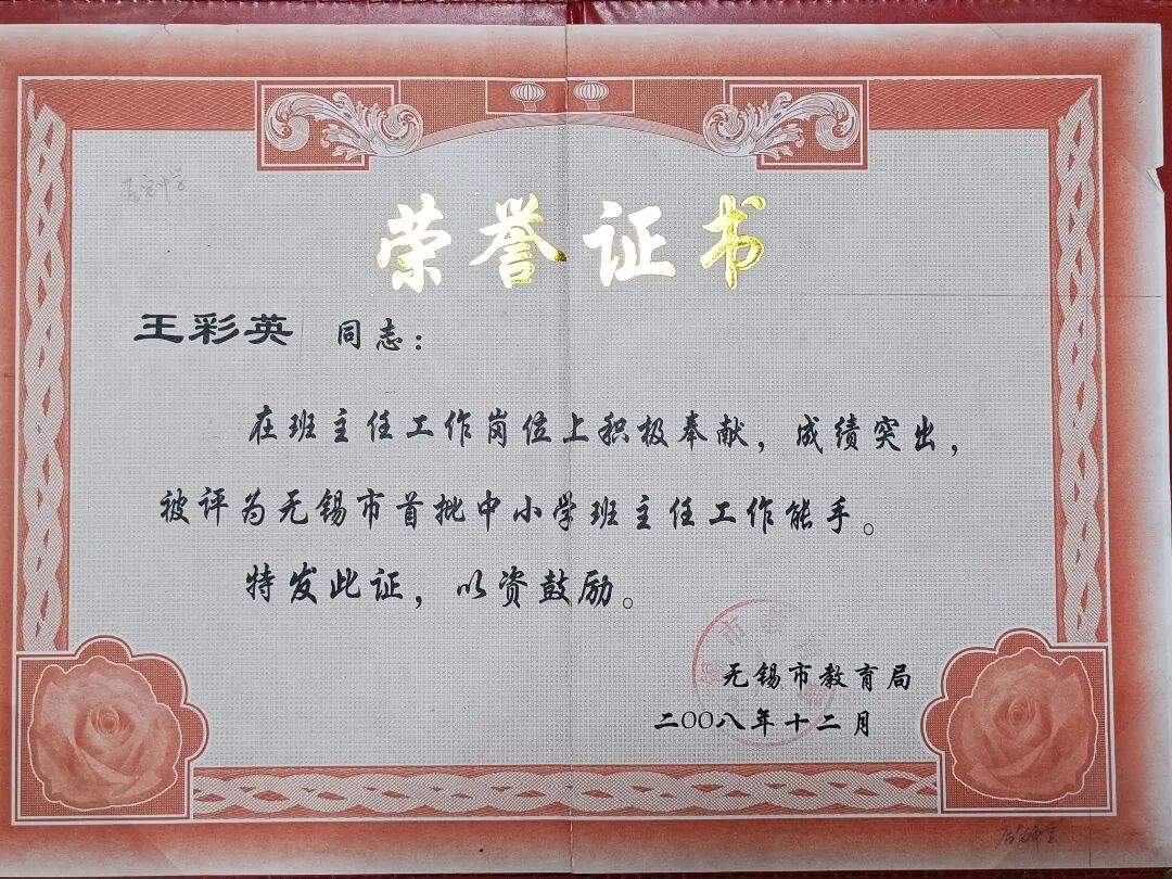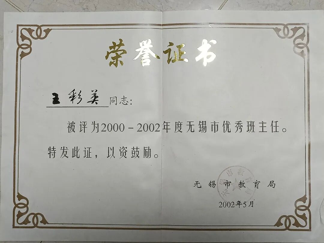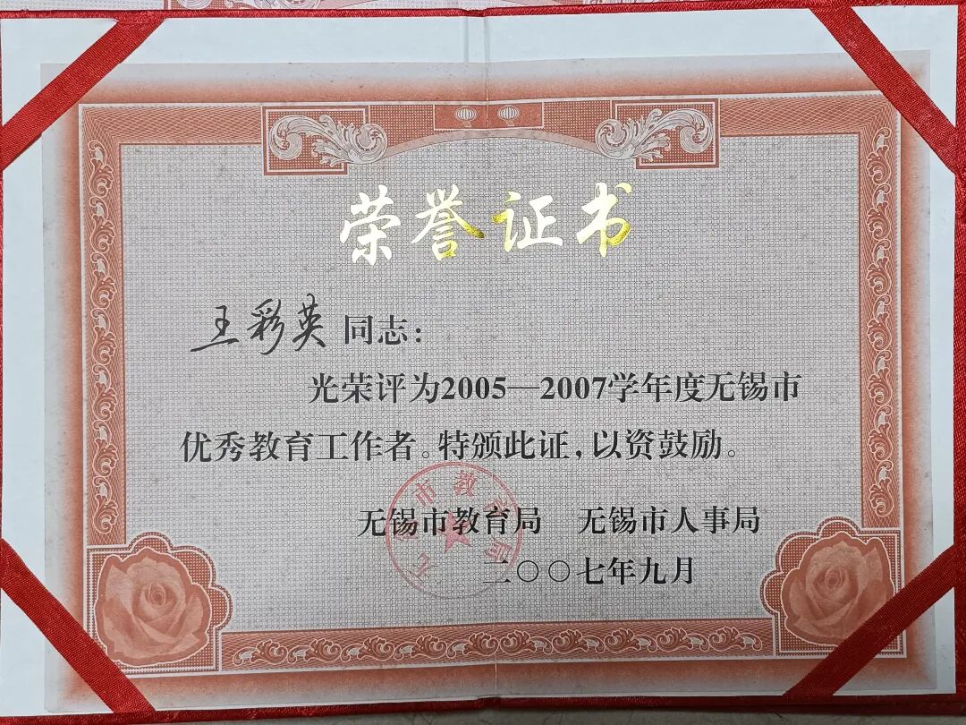 她帶的班級是“先進集體”的??停?001年的初二(1)班、2004年的初一(7)班、2005年的初二(7)班,先后獲評“無錫市先進學生集體”,每一份榮譽背后,都是她與學生并肩奮斗的時光。