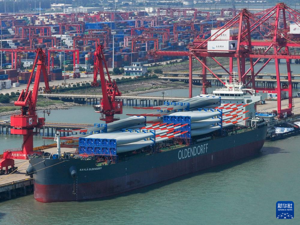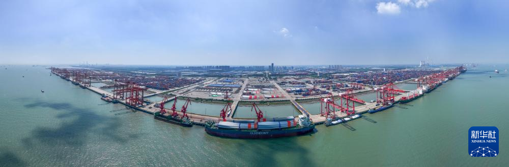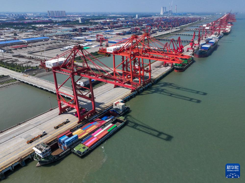 近日,位于長江入??诘慕K太倉港一片繁忙,港口內的船只和貨車按部就班運輸、裝卸貨物。據江蘇太倉港口管委會介紹,2025年1至8月份,太倉港完成集裝箱吞吐量580萬標箱,同比增長2.2%,完成貨物吞吐量1.99億噸,同比增長7.9%,其中外貿貨物吞吐量完成8659萬噸,同比增長11.7%,汽車、電池、光伏“新三樣”出口超50萬標箱,同比增長45%。