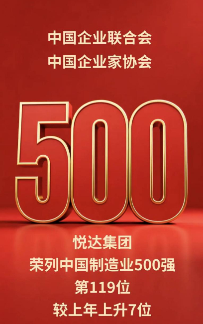 9月20日,在合肥舉辦的2025世界制造業大會上,中國企業聯合會、中國企業家協會發布了2025中國制造業企業500強榜單。悅達集團位列第119位,較上年上升7位。