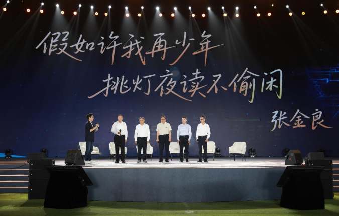 奧運冠軍張雨霏、宇樹科技創始人王興興結合自身經歷,用青春熱血的拼搏故事激勵年輕學子逐夢新時代?!翱鞓诽K超”全民參與、“燃”遍全網,江蘇十三市蘇超球隊代表齊聚一堂,和學生熱情互動,展現活力滿滿的幸福中國、快樂足球。貴州省榕江縣委書記徐勃和武警官兵代表馬東昇,動情講述“村超”快速復賽背后的魚水情深故事,傳遞“中國脊梁”的感動。