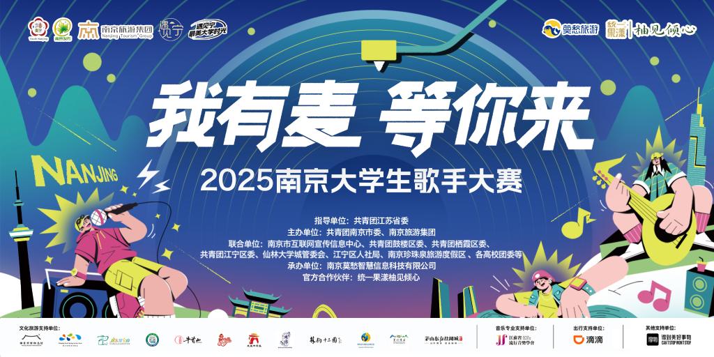 本屆大賽由共青團江蘇省委指導,共青團南京市委、南京旅游集團等單位聯合主辦,以“我有麥,等你來”為主題,面向所有在寧高校在校學生(含2025級新生)。賽事共設初賽、復賽、半決賽、決賽四個階段。首場復賽近日已在南京工程學院舉行,45名校園高手一展歌喉,吸引了上千名學生觀看。根據賽程安排,10月17日在南京林業大學、10月19日在南京工業大學、10月25日在南京審計大學金審學院還將舉行三場復賽。兩場半決賽將于11月1-2日在鼓樓華貿新天地舉辦,總決賽將于11月8日在江寧U湖大草坪舉辦。