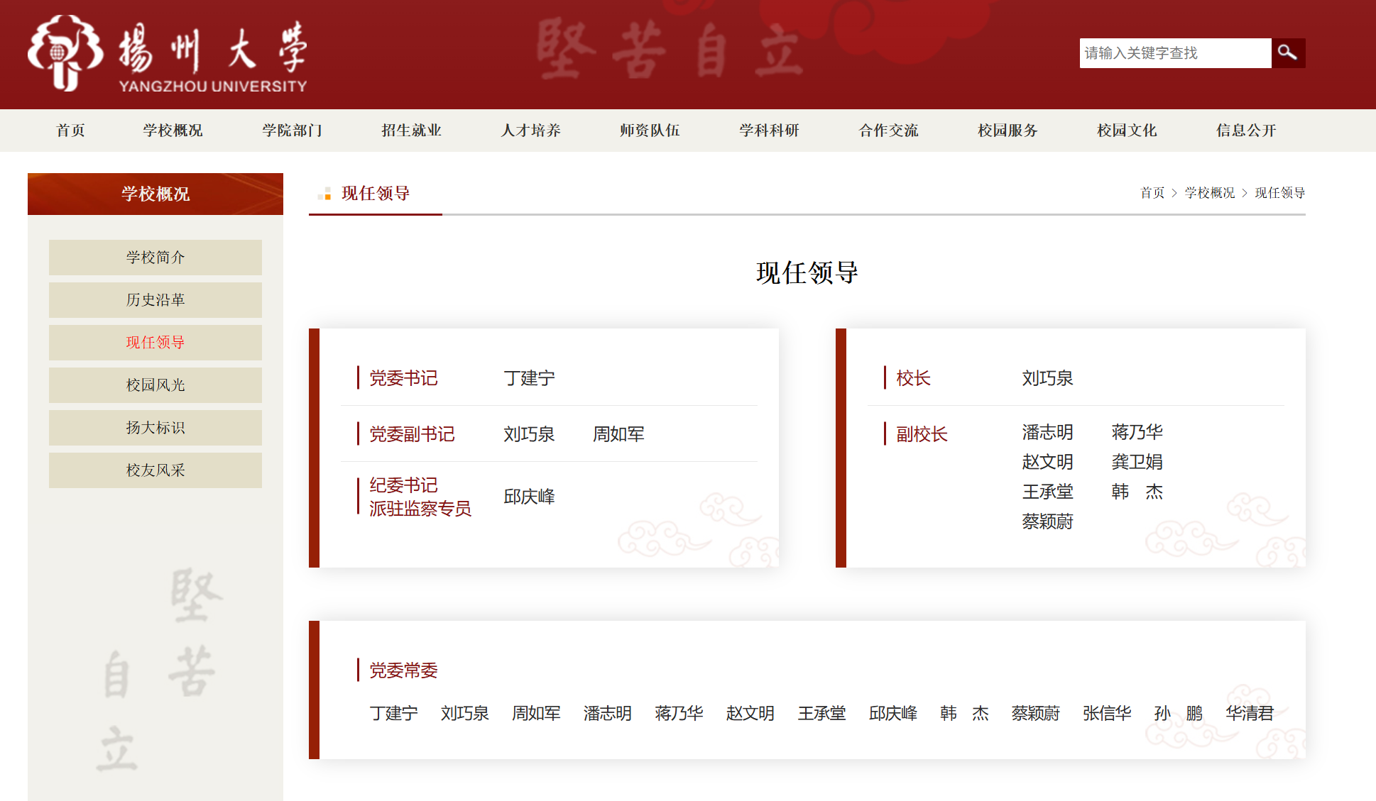 近日,揚州大學官網“現任領導”一欄更新后顯示,潘志明已任揚州大學黨委常委、副校長,此前他為宿遷學院黨委副書記、校長。
