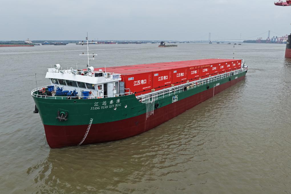 新華網南京10月17日電(記者楊紹功)近日,江蘇省港口集團江蘇遠洋“江遠秦淮”輪和“江遠金陵”輪分別從南京港龍潭港區和徐州國際集裝箱碼頭對向開出,標志著全國首條內河集裝箱運輸綠色航線正式開通。