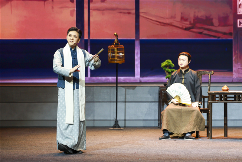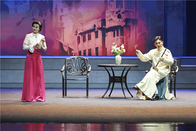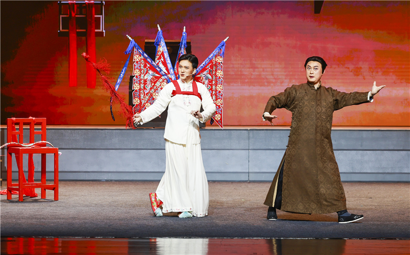 10月20日晚,江蘇省泰州市泰州大劇院內,由泰州梅蘭芳京劇團創排的大型現代京劇《梅蘭芳·丹桂記》在2025“百梅爭艷”戲曲匯“梅花獎”精品展演舞臺上精彩上演。