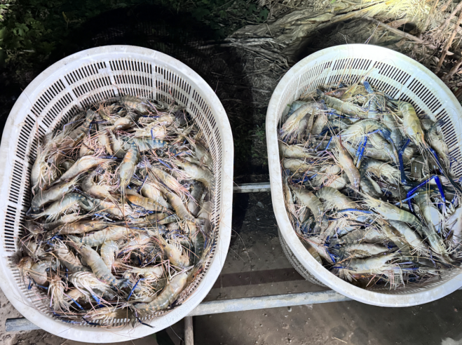 每到傍晚時分,渠西村的蝦塘邊便熱鬧起來。村民們熟練地捕撈,燈光照射下,羅氏蝦在網中活蹦亂跳,十分鮮活。隨著漁網緩緩收攏,一只只個大體肥、青殼白肚的羅氏蝦便被捕撈上岸。這些羅氏蝦生長于渠西村優質的水體環境,得益于科學的養殖管理,肉質鮮嫩,口感彈牙,深受市場歡迎。