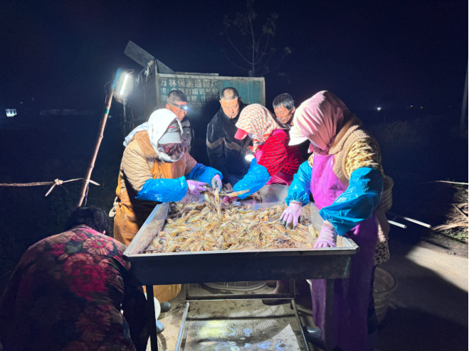 夜色漸深,渠西村的售賣點依然人頭攢動。歡聲笑語中,一筐筐羅氏蝦被裝車運走,村民們臉上洋溢著豐收的喜悅。這燈火下的忙碌身影,這鮮活的交易場景,正是渠西村老百姓勤勞致富、追求美好生活的生動寫照。