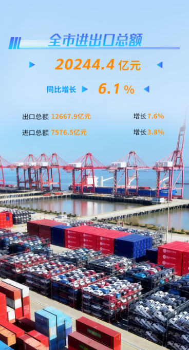 前三季度,全市進出口總額突破2萬億元,達20244.4億元,同比增長6.1%,其中出口總額12667.9億元,增長7.6%;進口總額7576.5億元,增長3.8%。新興市場保持活躍。對共建“一帶一路”國家進出口9071.9億元,同比增長15.7%,占全市進出口總額的比重達44.8%,同比提高3.7個百分點。其中對東盟進出口增長26.2%。裝備制造業出口穩定增長。裝備制造業出口增長7.6%,其中電氣機械和器材制造業、通用設備制造業、專用設備制造業分別增長14.3%、10.2%和16.2%。實際使用外資55.96億美元,同比增長12.6%。