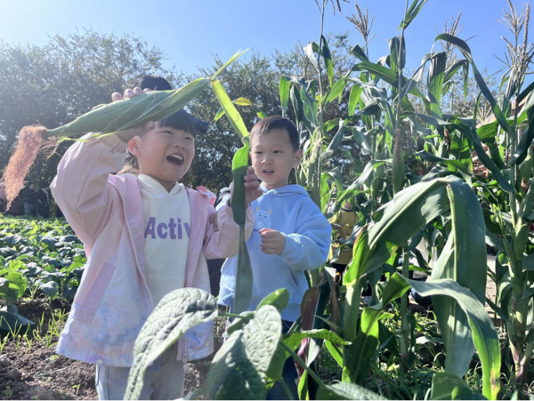 田間實踐環節更是讓孩子們過足了“小農夫”癮。爺爺奶奶先向孩子們演示各種農具的用法,隨后孩子們深入田間,有的蹲在地里小心翼翼地刨土;有的舉著剛挖出的紅薯向同伴炫耀;還有的在剝玉米時,發現“玉米須像爺爺的胡子”,現場笑聲不斷。指尖沾滿泥土的觸感、農作物生長的細節,讓孩子們在勞動中直觀感知“春種秋收”的規律,也懂得了“每一粒糧食都來之不易”。