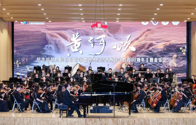 2025年5月18日,在江蘇高校首場聯合紀念抗戰勝利80周年交響音樂會現場,由中國藥科大學、南京大學、南京理工大學、河海大學四所高校大學生組成的江蘇省大學生藝術團聯合會器樂聯盟交響樂團,現場演繹《紅旗頌》《黃河大合唱》《黃河鋼琴協奏曲》等多首反映抗戰精神的經典愛國主義曲目。交響樂團以音樂為紐帶,既為在場師生、文藝界人士及社會各界觀眾帶來了一場震撼人心的音樂盛宴,更用琴弦與音符架起了連接歷史與當下的橋梁。
