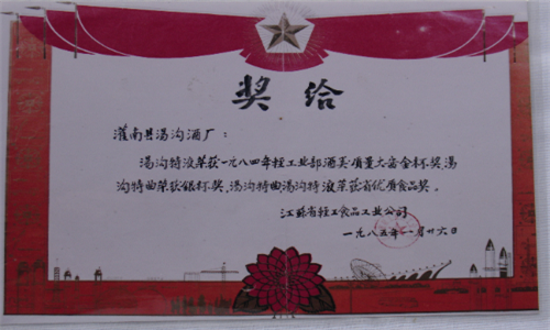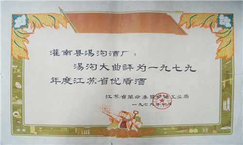 湯溝酒屬中國歷史文化名酒,距今已有1000年歷史。自1915年湯溝大曲在萊比錫國際博覽會上榮獲銀質獎章以來,相繼獲得國家級金銀質獎8枚、部級金銀質獎15枚、獲國際金獎4枚。湯溝酒生態文化旅游區屬國家3A級旅游景區、江蘇省工業旅游示范區,被工信部認定為“國家級綠色工廠”,產地灌南縣被評為“中國白酒之鄉”“世界美酒特色產區”。